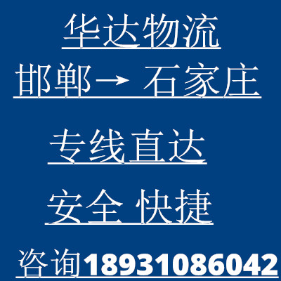 邯鄲到石家莊物流公司 |邯鄲物流公司 華達物流 電話0310-5510646手機18931086042專業提供邯鄲到石家莊物流專線運輸、整車運輸、零擔運輸、大件運輸、長途搬家以及易碎物品整理裝箱、家具電器拆卸打包等服務。10年物流運輸經驗,保證客戶零風險,一站式綜合邯鄲到石家莊物流服務,您值得信賴!
